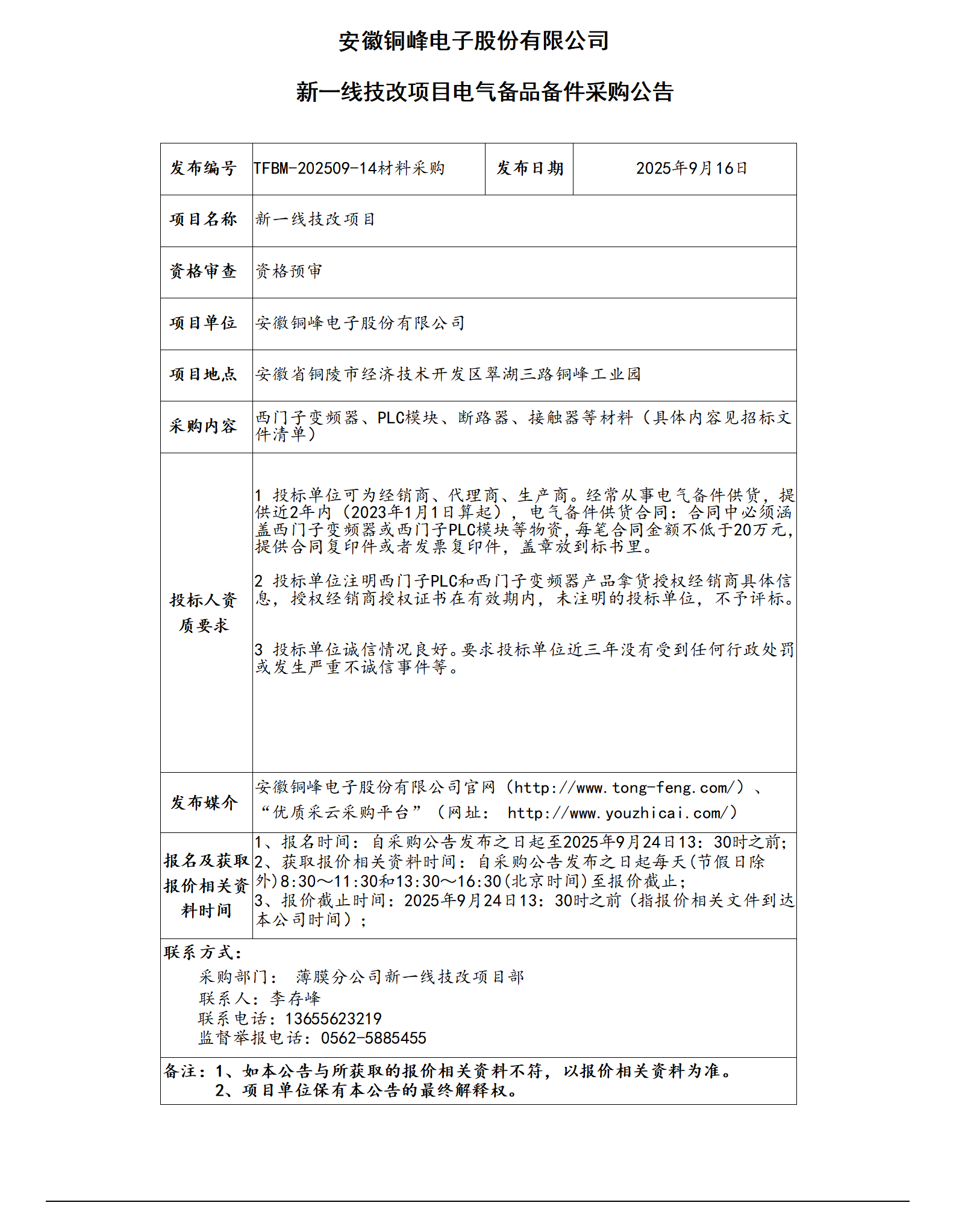 安徽銅峰電子股份有限公司 (新一線技改項目進口潤滑油采購公告)_01