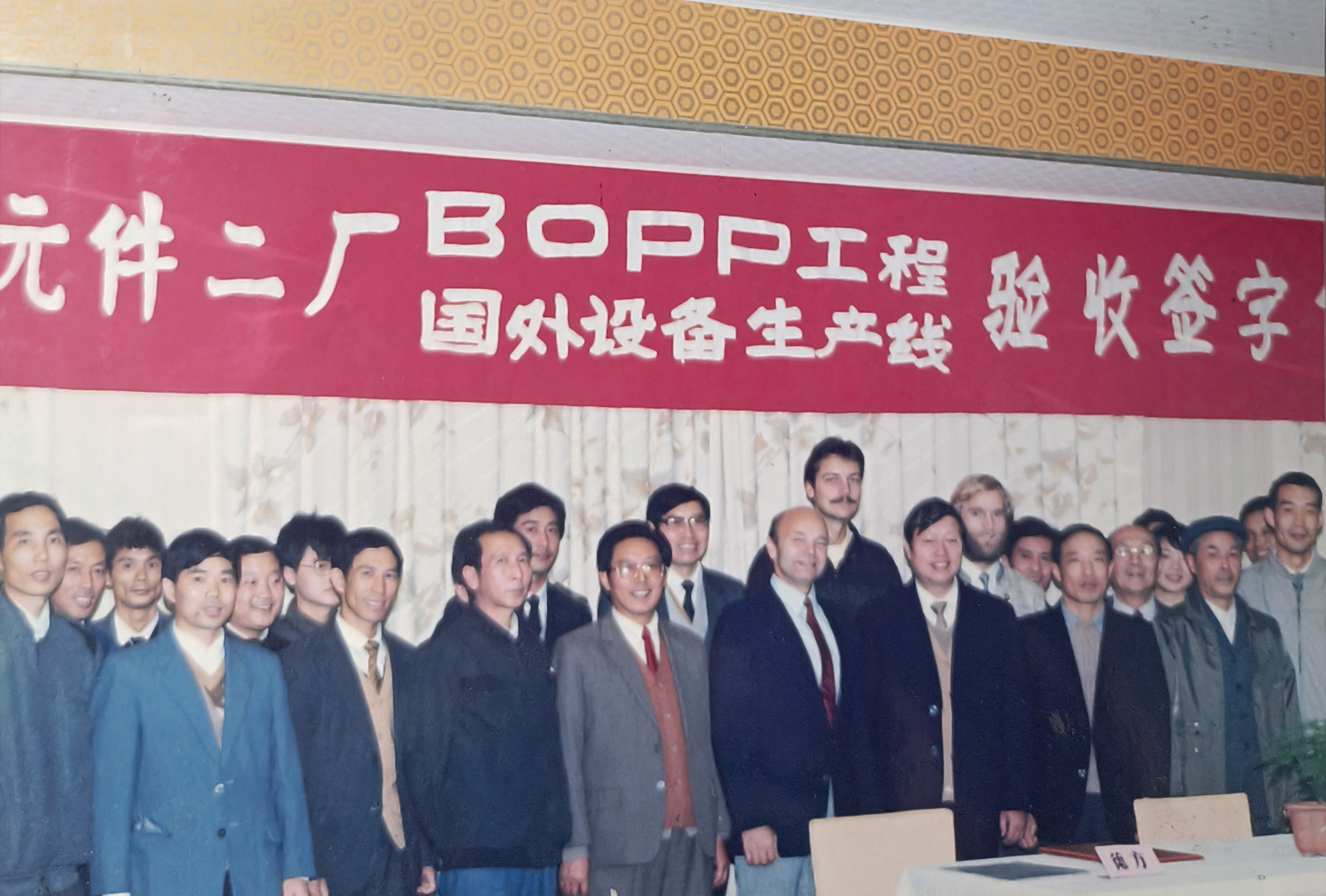 銅峰“老一線”于1989年建成投產(chǎn)。上世紀(jì)80年代,當(dāng)時(shí)國(guó)內(nèi)電容器用聚丙烯膜幾乎完全依賴進(jìn)口,嚴(yán)重制約了我國(guó)電容器等相關(guān)產(chǎn)業(yè)的發(fā)展。銅峰公司前身銅陵市無(wú)線電元件二廠積極響應(yīng)國(guó)家需求,決定從國(guó)外引進(jìn)雙向拉伸電容器用聚丙烯膜生產(chǎn)線。1985年項(xiàng)目啟動(dòng),經(jīng)過(guò)一系列籌備工作,1986年獲得國(guó)家計(jì)委批準(zhǔn)立項(xiàng),并被列入國(guó)家 “七五” 機(jī)械電子工業(yè)重點(diǎn)技改項(xiàng)目。1988年,主線和相關(guān)輔助設(shè)備成功引進(jìn)。經(jīng)過(guò)一年多的緊張建設(shè),1989年生產(chǎn)線正式投產(chǎn)?!袄弦痪€”的建成投產(chǎn),是銅峰發(fā)展史上具有重要意義的轉(zhuǎn)折點(diǎn)。該線加速了銅峰公司產(chǎn)品結(jié)構(gòu)調(diào)整和轉(zhuǎn)型步伐,并由此形成了全國(guó)唯一的“電工三膜”(電容薄膜、金屬化膜和薄膜電容器)一條龍的生產(chǎn)格局,使企業(yè)的經(jīng)濟(jì)規(guī)模和技術(shù)水平躍上一個(gè)新臺(tái)階。